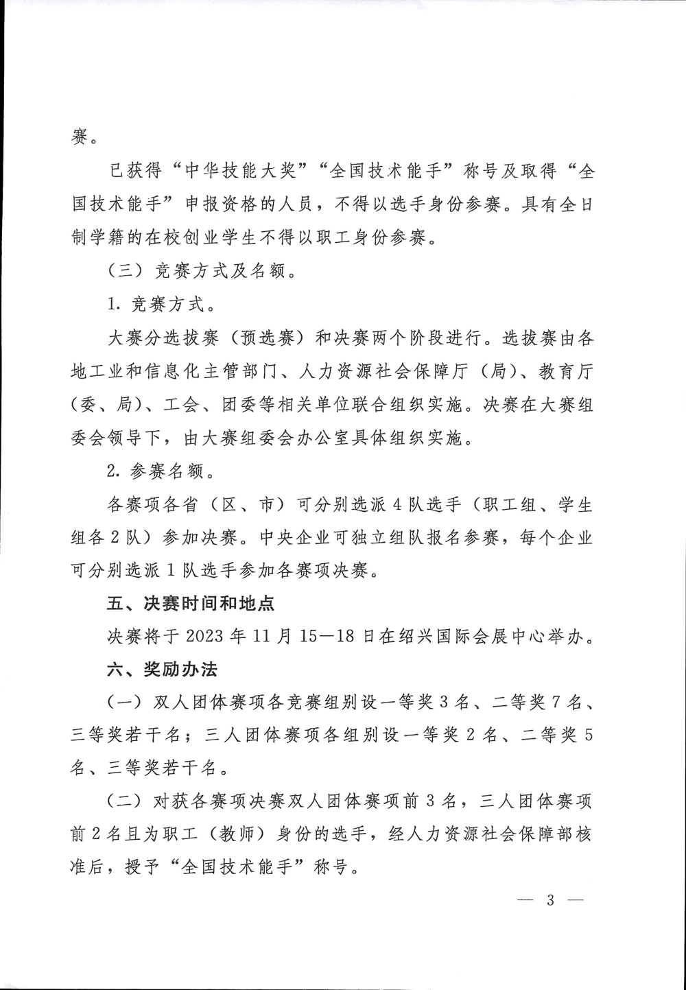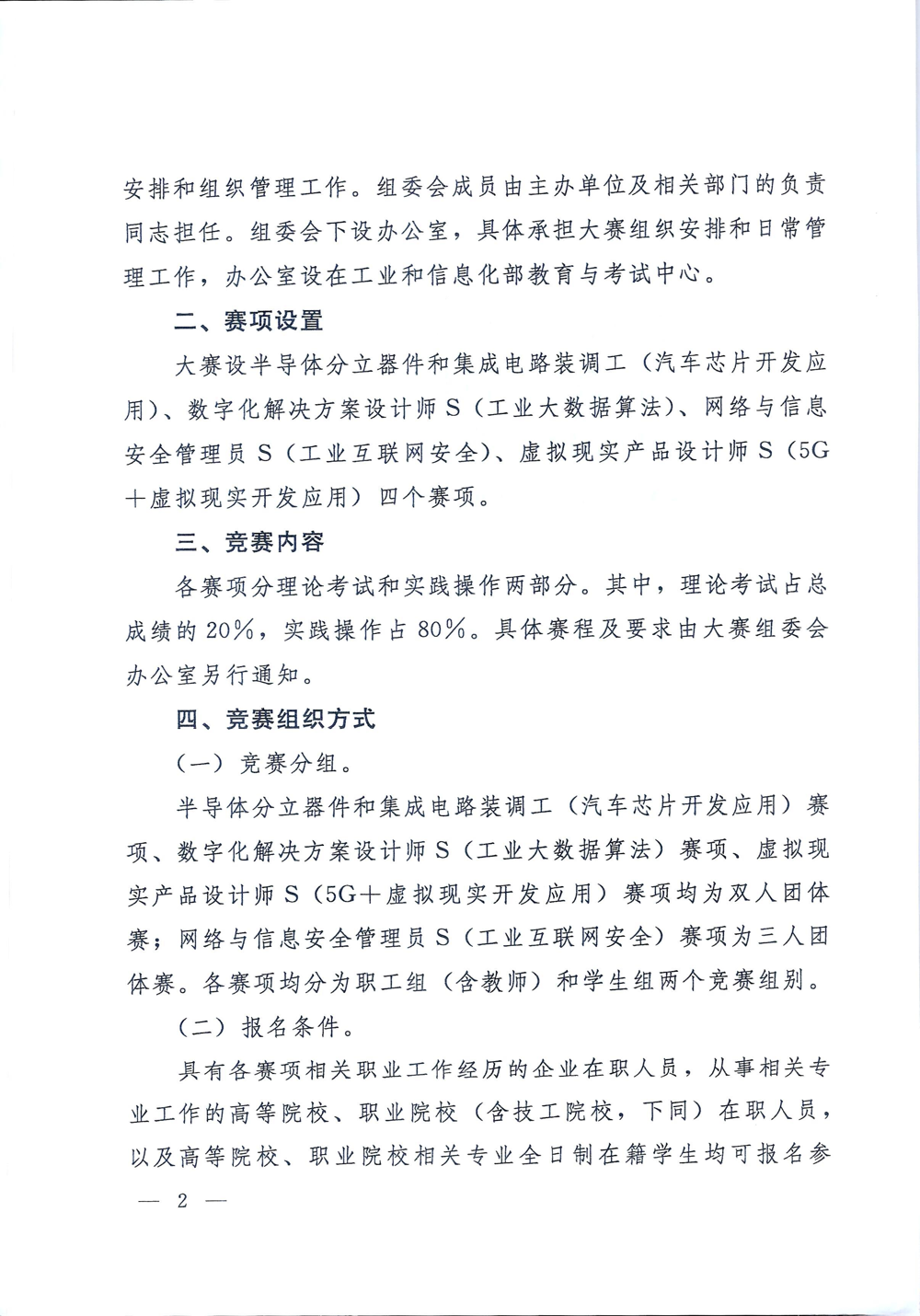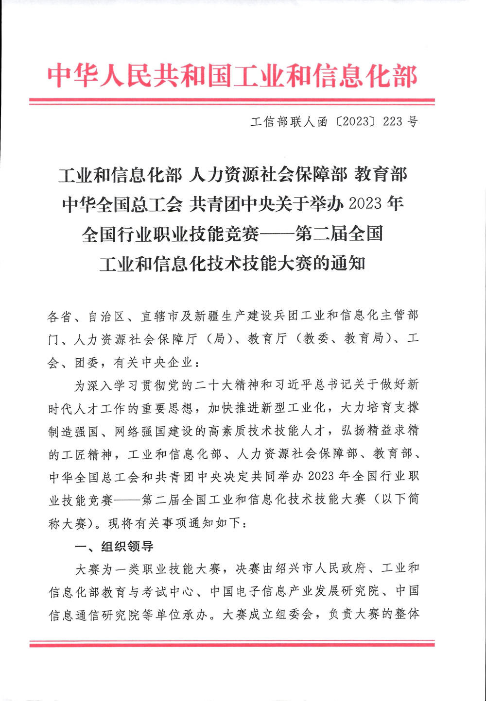 关于举办2023年全国行业职业技能竞赛——第二届全国工业和信息化技术技能大赛的通知 来源: 发布时间:2023-09-19 09:15:48 浏览次数: 次 【字体:小 大】 终审:职中超管 分享到: 【打印正文】